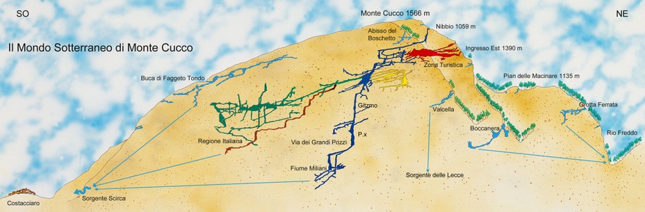 Monte Cucco - Rappresentazione schematica del sistema sotterraneo